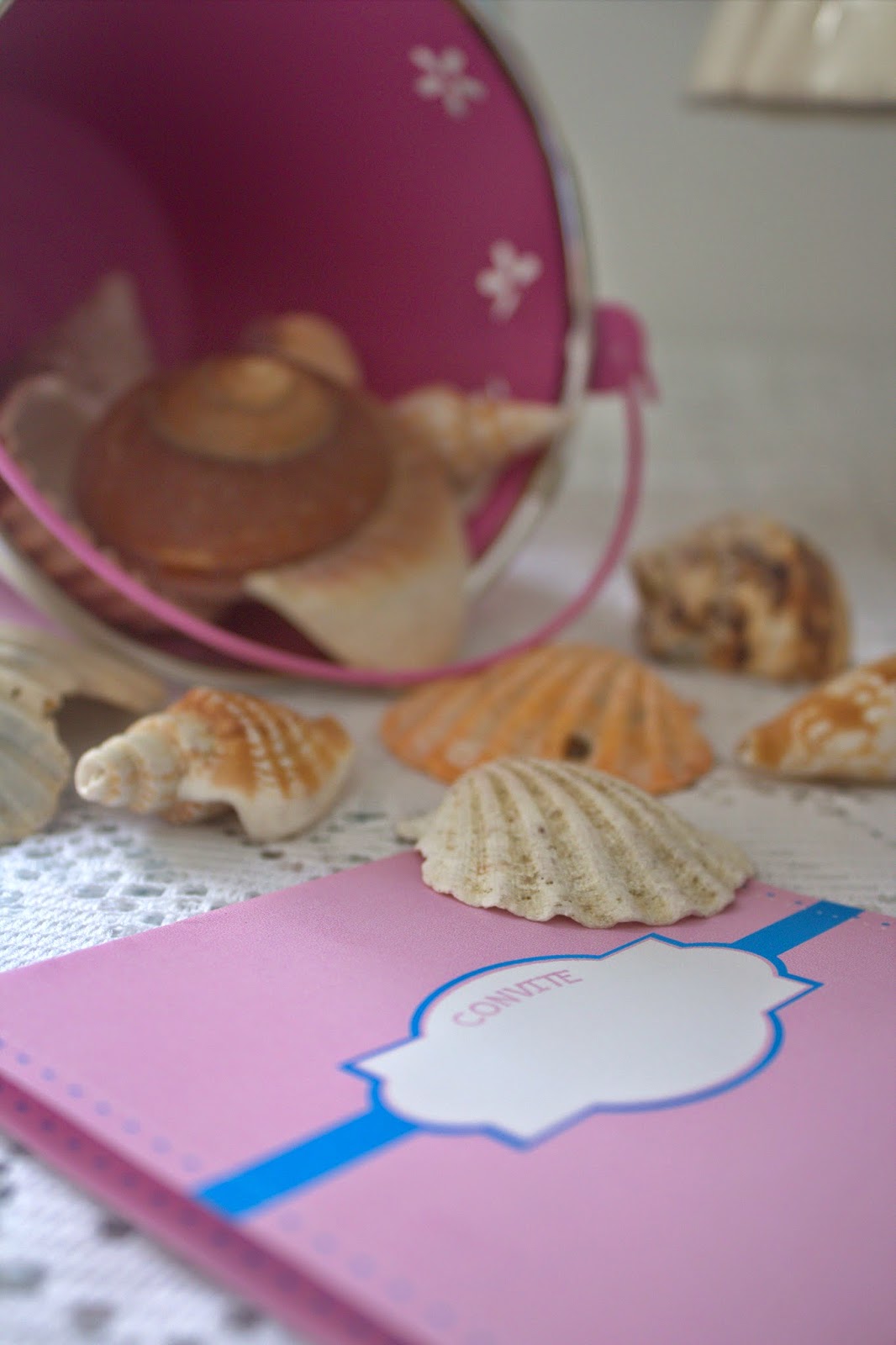 O tema do bolinho foi inspirado no convite elaborado pelos papás, com as cores rosa, azul, e branco, e onde se aplicava o tema da praia e o surf.